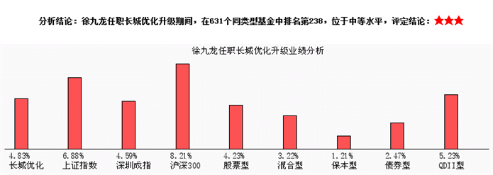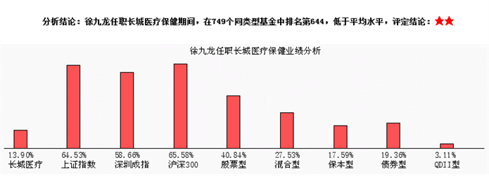 徐九龙先生,兰州大学理学学士、中山大学理学硕士。具有13年证券从业经历。曾就职深圳市沙头角保税区管理局、深圳市经济贸易局。2002年3月进入长城基金管理有限公司,任行业研究员,2008年2月5日至2009年3月4日任“长城久富核心成长股票型证券投资基金”基金经理,2009年6月30日至2010年11月17日任“长城景气行业龙头灵活配置混合型证券投资基金” 基金经理;自2009年1月6日起任“长城安心回报混合型证券投资基金”基金经理,自2014年2月28日起任“长城医疗保健股票型证券投资基金”基金经理。