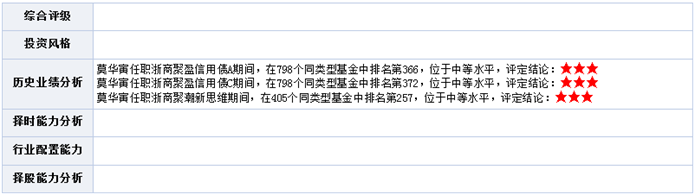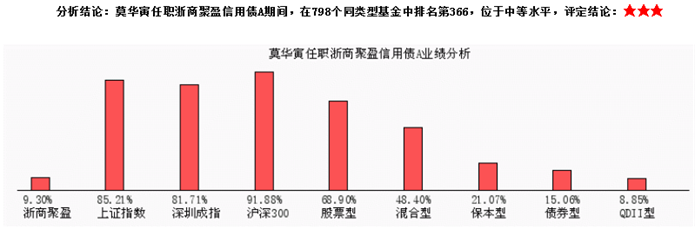 基金经理分析:莫华寅,上海外国语大学工商管理硕士,特许金融分析师(CFA)。历任中银基金管理有限公司销售与市场部华南区总经理、东吴证券股份有限公司固定收益部高级交易员。现任浙商基金管理有限公司固定收益研究员、浙商聚盈信用债债券型基金基金经理。