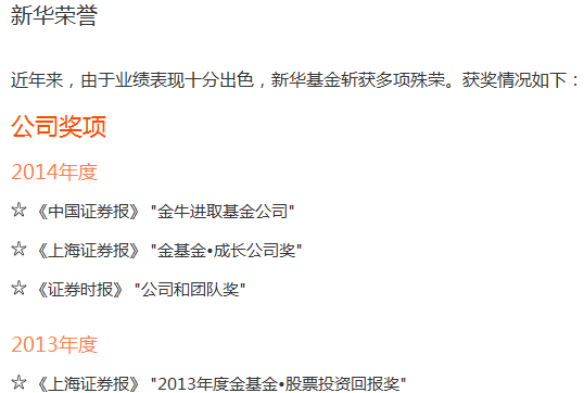 下图为新华基金管理公司所获荣誉: