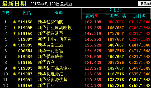 下图为新华基金管理公司的业绩: