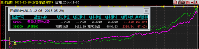 该基金经理过去表现出色,下图为其在担任新华泛资源优势基金经理期间的业绩表现: